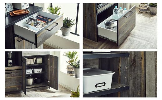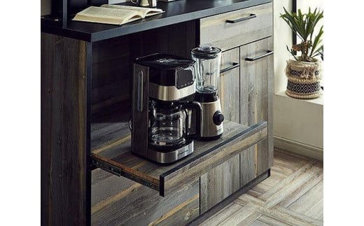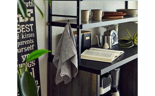 - 【開梱設置】食器棚 レンジ台 アイン 上台棚板タイプ 幅119.7cm ブルックリン キッチンボード キッチン収納 おしゃれ 家具 大川家具 幅120cm 収納家具 棚 アイアンフレーム