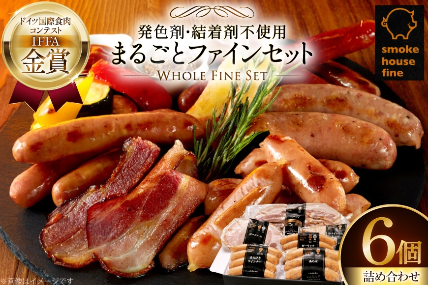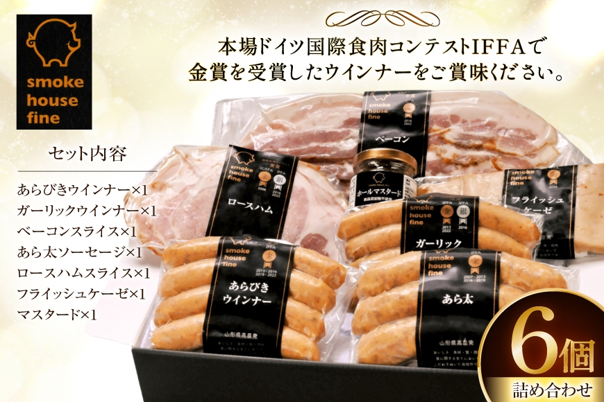 - ソーセージ 詰め合わせ まるごとファインセット 6種6個 [ファイン 山形県 高畠町 tk06ays750030] マスタード付 豚 肉 ウィンナー ソーセージ ハム ベーコン 食べ比べ 詰合せ セット
