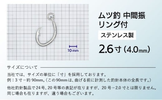KS004 ムツ釣 中間振 リング付 ステンレス製2.6寸(4.0mm)10本×1袋 2袋 3袋