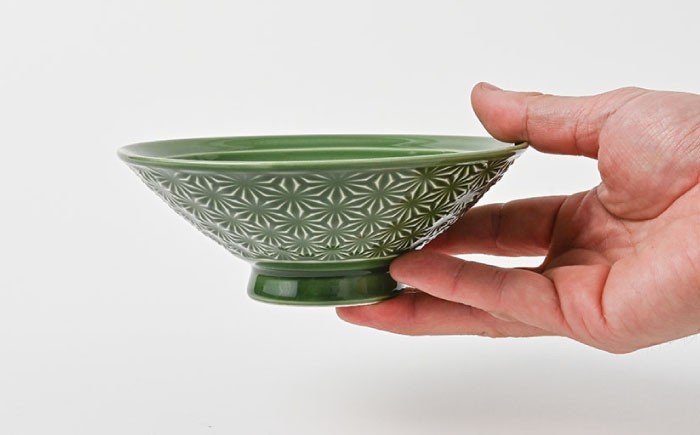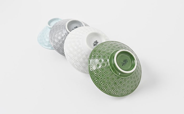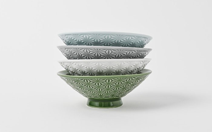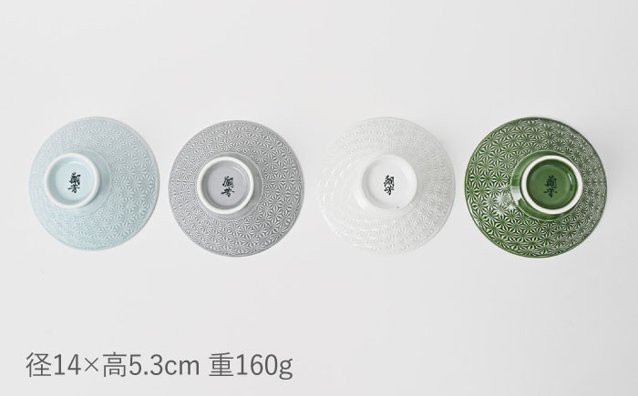 - 【波佐見焼】平碗 セット 麻の葉紋様(彫り) 青白釉・グレー・白磁・織部色 4色セット【福田陶器店】 [PA380]
