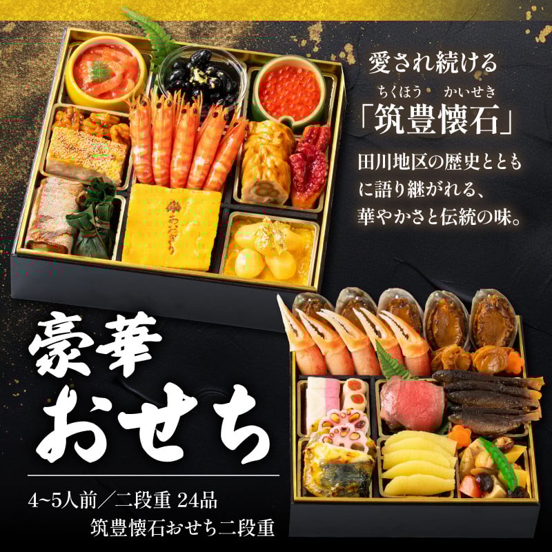 【12/31お届け】 おせち 4-5人前 冷蔵 二段重 (24品) 筑豊懐石おせち お節 おせち 2025 おせち 冷蔵 おせち 4人前 おせち 5人前 懐石 おせち 料亭あおぎり 田川 川崎町 おせち