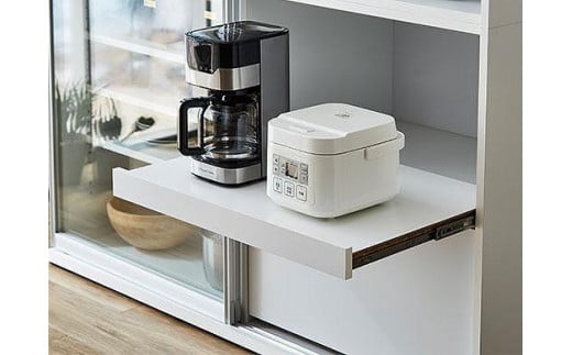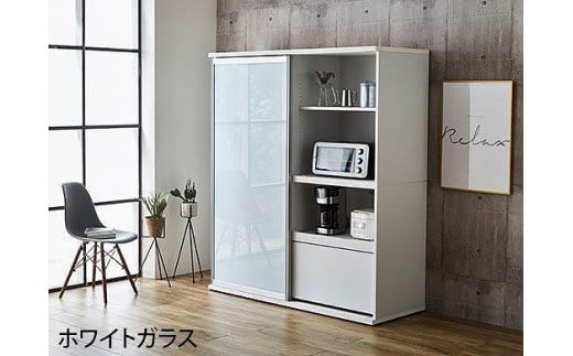 - 【開梱設置】引き戸 食器棚 レンジボード ポエム 幅133.5 (ホワイトガラス/ホワイト)キッチン収納 大川家具 家具