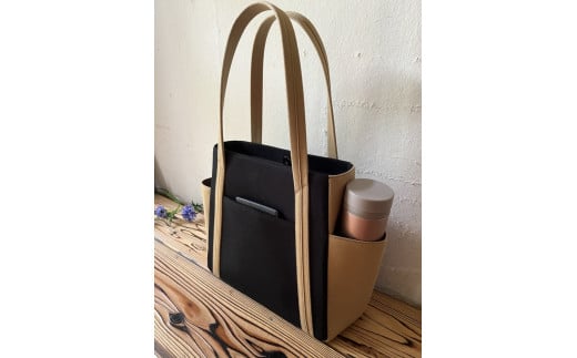 【AKIRAオリジナル】【マツコの知らない世界 で紹介されました!】中型レディストートバッグ ダブルポケット 黒帆布×ベージュ 多収納 6ポケット 軽量 軽い 日本製 キャンバス 通勤 通学 大容量 上質 カジュアル オシャレ レディース カバン 鞄 バック