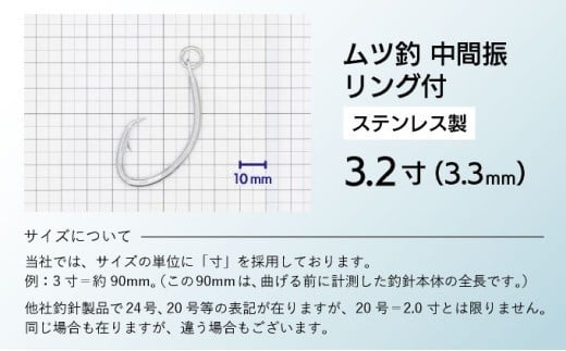 - KS003-2 ムツ釣 中間振 リング付 ステンレス製3.2寸(3.3mm)10本×2袋