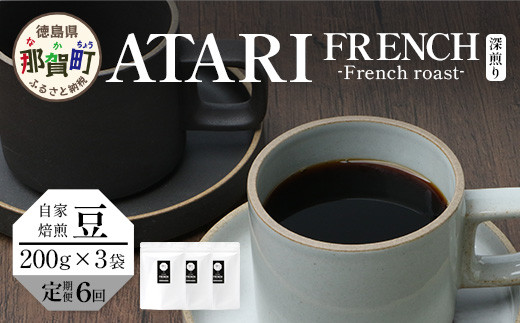 【定期便6回】【豆タイプ】珈琲屋 中-ATARI- FRENCH (深煎り) -French roast- 200g×3袋×6回【徳島県 那賀町 自家焙煎 コーヒー 珈琲 ブレンド コーヒー豆 珈琲豆 豆 スペシャリティコーヒー レギュラーコーヒー 深煎り フレンチロースト 詰め合わせ ギフト プレゼント お取り寄せ】CO-53