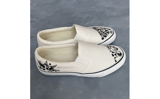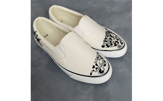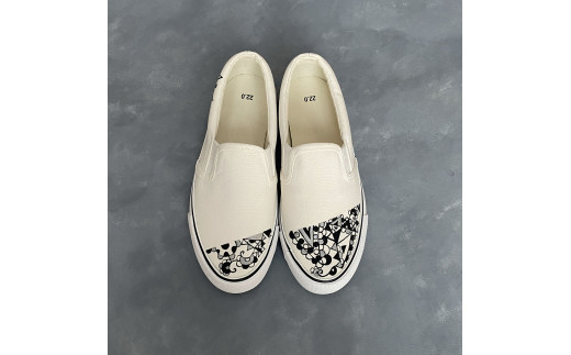 手描きスニーカー「ミュルクWA」24.0cm 白地 幾何学模様【受注制作】