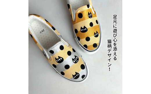 手描きスニーカー「ねこボーダーa」 スリッポン ワイズ 2E 22.0cm 【受注制作】