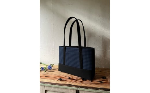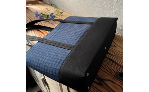 - 【AKIRAオリジナル】【マツコの知らない世界 で紹介されました!】中型スリムトートバッグ 千鳥格子紺色×黒色帆布 軽量 軽い 日本製 キャンバス 帆布 横型 肩掛け 通勤 通学 大容量 上質 カジュアル オシャレ レディース カバン 鞄 バック