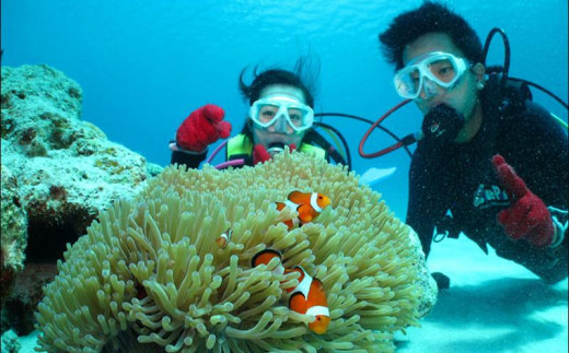 ボートで行く『青の洞窟&クマノミポイント』本格!体験ダイビング2本(2名様)