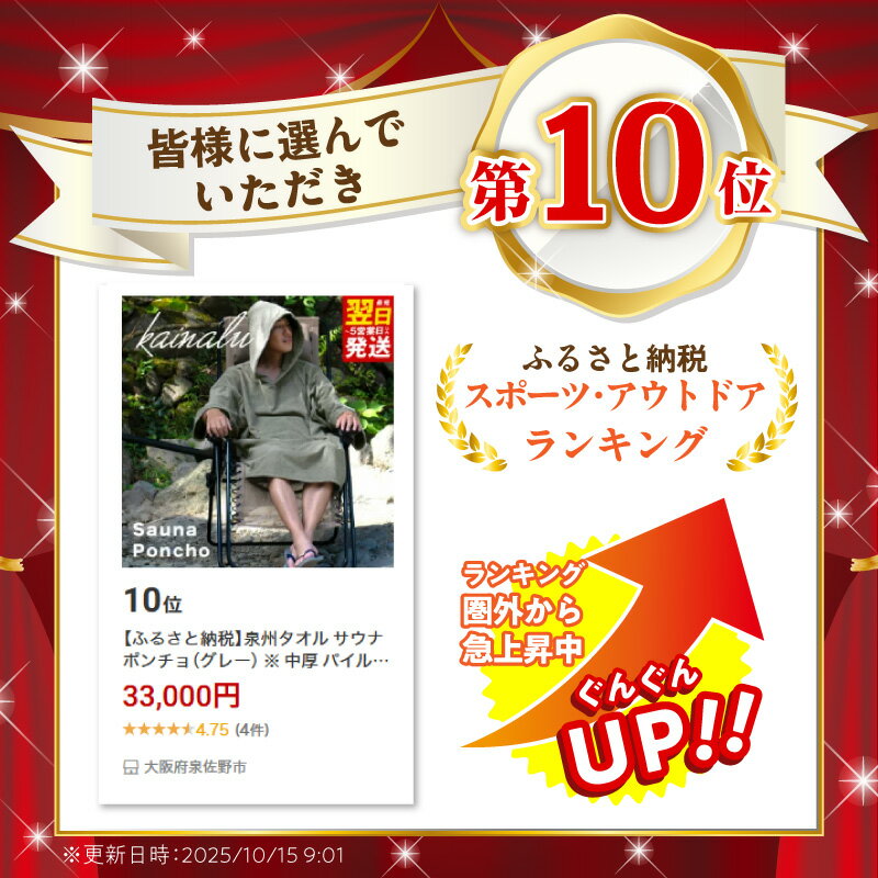 【ふるさと納税】泉州タオル サウナポンチョ(グレー) ※ 中厚 パイル 無地 吸水力 柔らかい 耐久性 単色 最短 翌日発送 5営業日