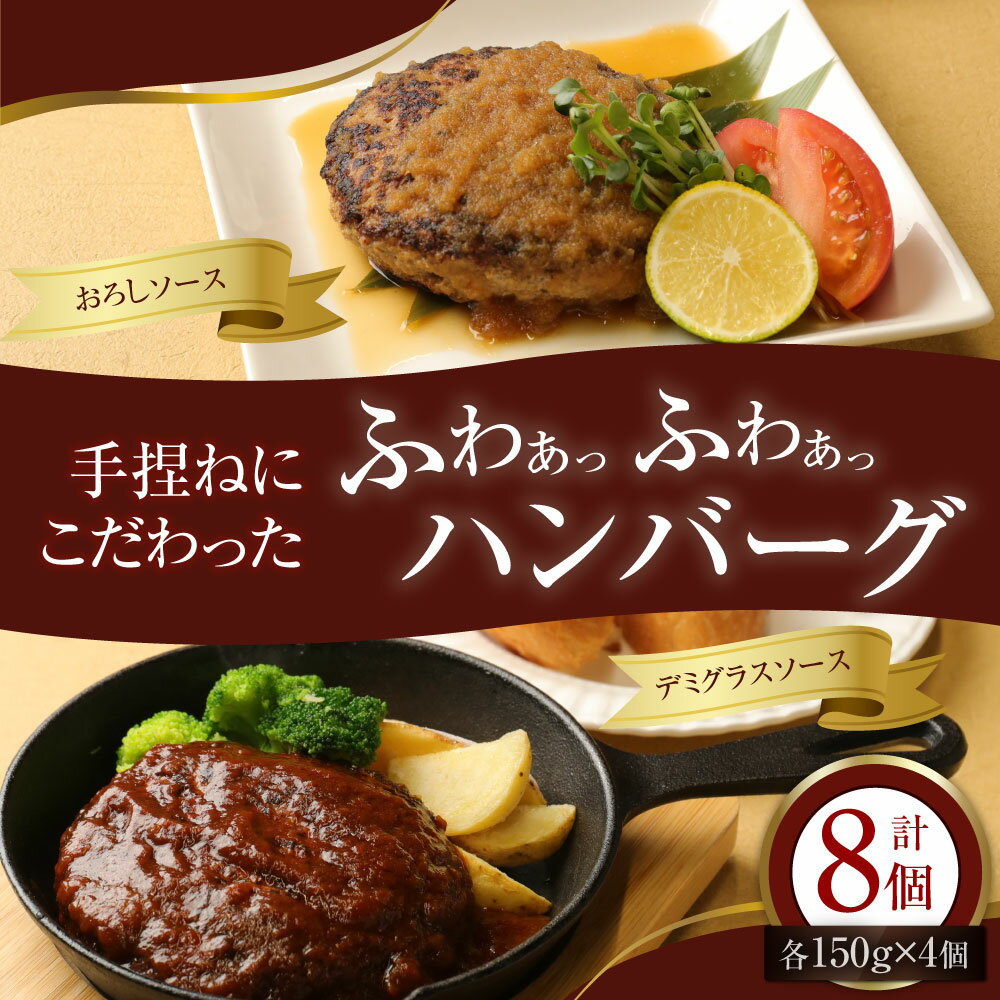 - 【ふるさと納税】 手捏ねにこだわった ふわぁっふわぁっハンバーグ 150g×8 ( デミグラスソース 150g×4 おろしソース 150g×4 ) 牛肉 豚肉 鶏肉 肉 冷凍 福岡県 香春町 送料無料