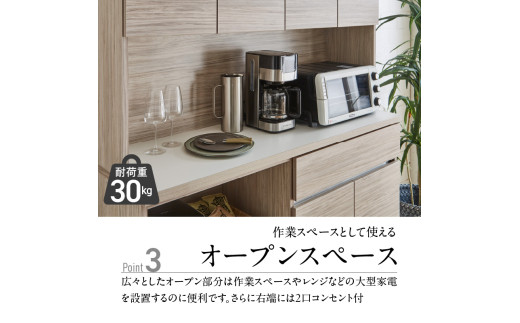 【開梱設置】キッチンボード 【セイル 140】 ヒッコリーホワイト_【開梱設置】 キッチンボード セイル 140 大川家具 カラー ヒッコリーホワイト キッチン 家具 完成品 コンセント付き オープン収納 お手入れ 簡単 耐震 お洒落 日本製 福岡県 久留米市 送料無料_Qd053-02
