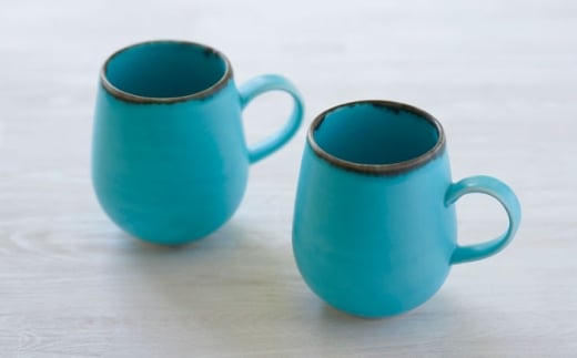 - 【波佐見焼】マグカップ ワイン型 渕錆 ターコイズブルー ペア【長十郎窯】 [AE116]