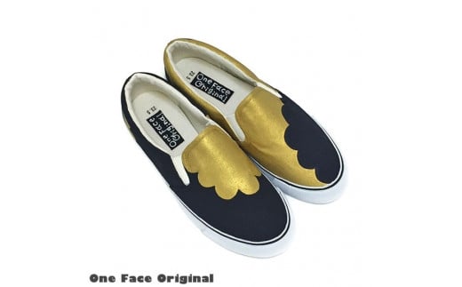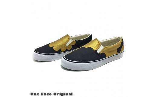 - 手描きスニーカー「moku-anti(G)」28.0cm アンティークゴールド×ブラック【受注制作】