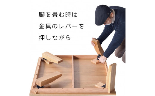 - 【総無垢】ローテーブル120 折りたたみ オーク 大川家具
