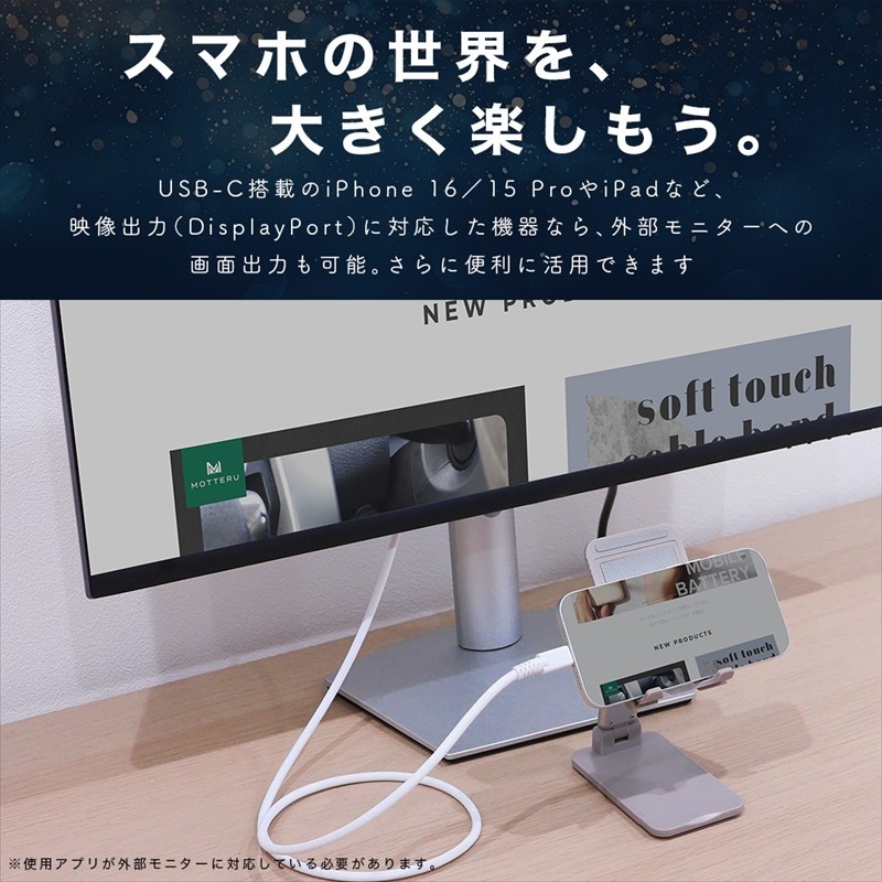 - しなやかで絡まない シリコンケーブル 40Gbps(USB4 Gen3x2)対応 PD240W USB-C to USB-C 1m 映像出力対応 急速充電 2年保証(MOT-SCBU4CCG100-BK)スモーキーブラック【タイプC ケーブル 神奈川県 海老名市 】