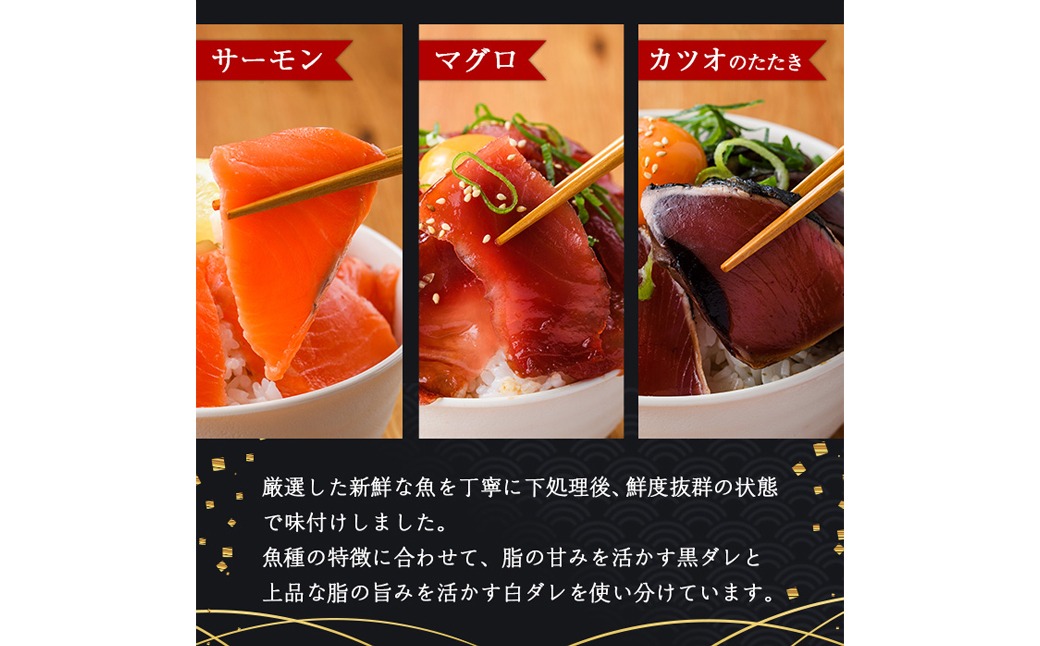 - 海鮮 お魚漬け丼 食べ比べセット(6種) ぶり 真鯛 カンパチ マグロ サーモン カツオのタタキ 食べ比べ セット 簡単 便利 小分け 個包装 まだい 鰤 鮪 鰹 お取り寄せ 海鮮丼 時短 【UZ-12】【請関水産】