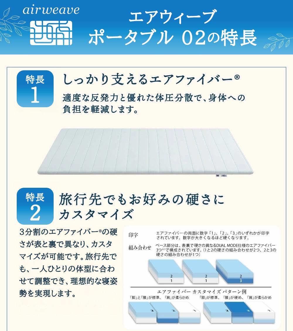 エアウィーヴ ポータブル 02 セミダブル ベッドマットレス ベッド マットレス セミダブル ダブル クイーン オールシーズン対応 ぐっすり ホテル 安眠 快眠 健康 高反発 腰 肩 熟睡 寝具 寝心地 新生活 洗える 洗濯可 送料無料 体圧分散 大人気 日本製