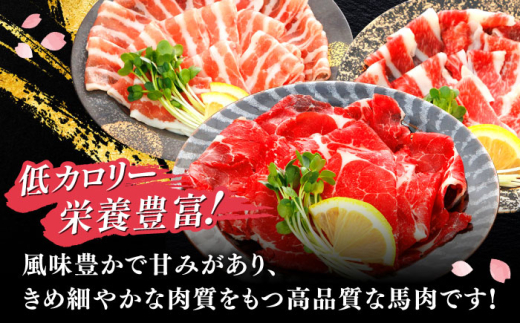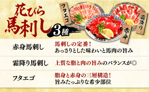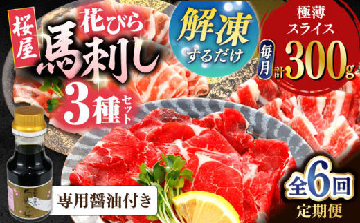 - 【全6回定期便】新感覚!極薄スライス「花びら馬刺し」3種盛り300g(専用醤油付き 150ml×1本) 馬刺し 熊本 カット済み 赤身 霜降り フタエゴ 小分け スライス済み 解凍するだけ【山都町(桜屋)】 [YBW126]