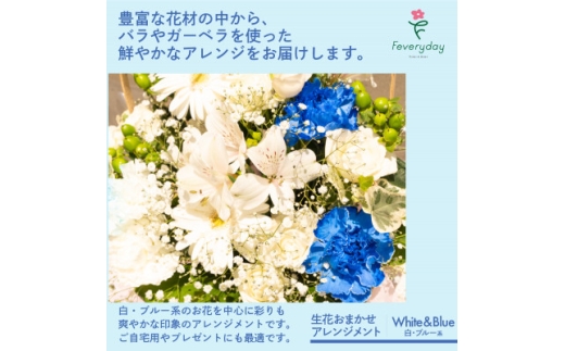 - 生花お任せアレンジメントL 白・ブルー系 お祝いやお誕生日におすすめ【1636480】