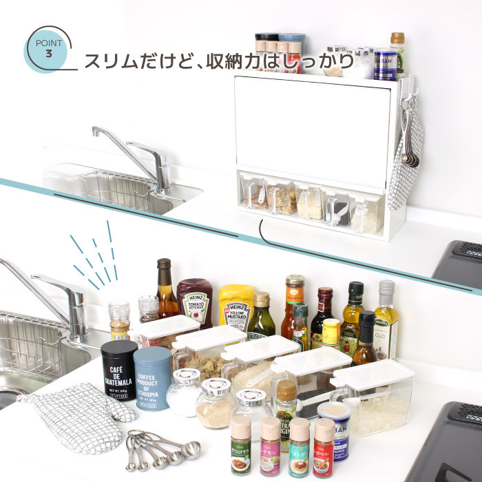 - 白いスパイスラック・ポット5杯 調味料入れ スパイスケース キッチンラック キッチン収納 キッチン用品 燕三条製 [川口工器] 【041S010】