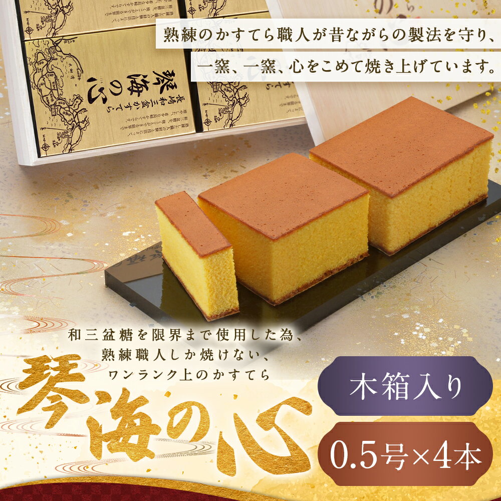 【ふるさと納税】【7営業日以内発送】【木箱入り】琴海の心2号(0.5号×4本) 長崎和三盆かすてら ザラメ 和三盆 カットなし カステラ スイーツ お菓子 和菓子 おやつ 長崎県 長崎市 送料無料