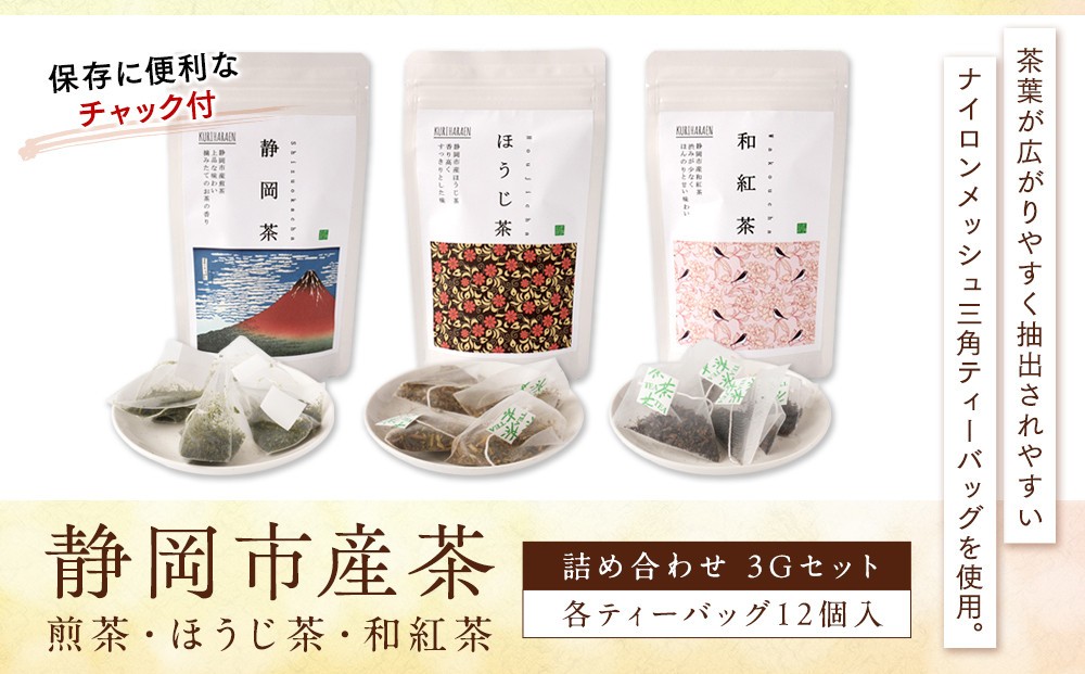 静岡市産茶(煎茶・ほうじ茶・和紅茶)詰め合わせ3Gセット [№5550-0976]