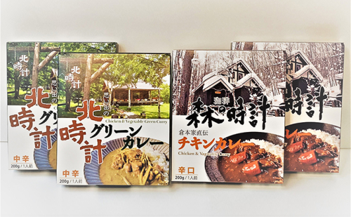 森の時計チキンカレー・北時計グリーンカレー 計4個セット (カレー レトルト 加工品 おかず 森の時計 北海道 富良野市 ふらの)