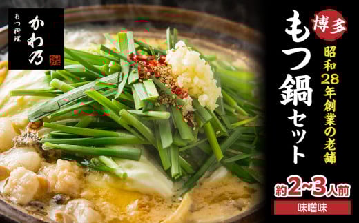 【もつ料理かわ乃】もつ鍋2~3人前セット(みそ味) モツ もつ ホルモン 鍋 老舗 お店の味 味噌 スープ 〆付き 麺 ちゃんぽん麺 セット 冷凍配送 簡単 調理 福岡県 八女市
