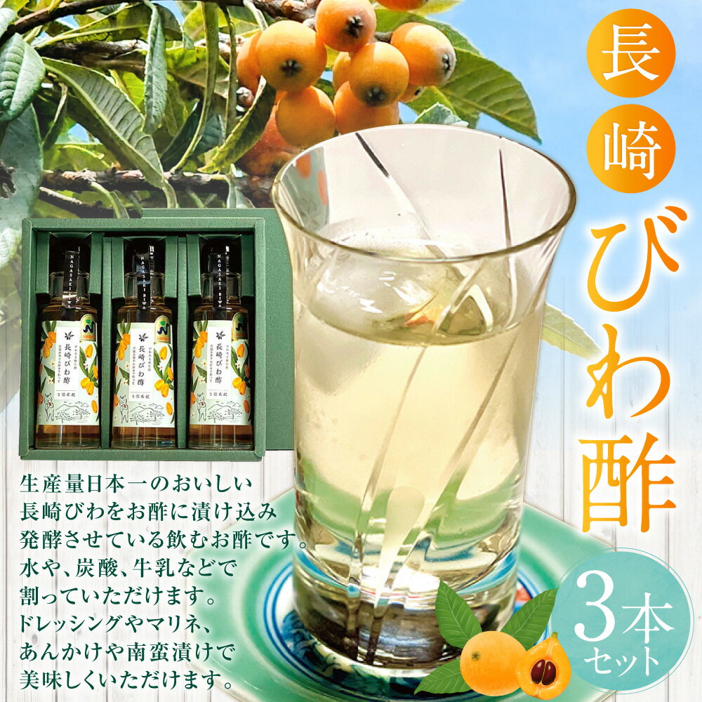 - 【ふるさと納税】【7営業日以内発送】長崎びわ酢 3本セット お酢 酢 枇杷 ビワ ビタミンA カリウム カルシウム 食物繊維 健康 長崎県 長崎市 送料無料