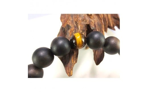 - 男性用数珠 国産 黒柿 虎眼石仕立 正絹房/ 桐箱入り【1056933】