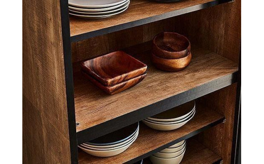 - 【開梱設置】引き戸 食器棚 ダイニングボード ポエム 幅153.5 (ホワイトガラス/レディオーク)キッチン収納 大川家具 家具