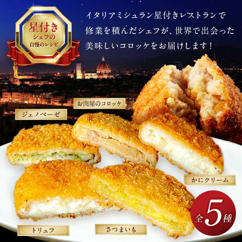 - 【ふるさと納税】【レビューキャンペーン】世界の コロッケ 詰め合わせ (ウスターソース付)《 惣菜 詰め合わせ 蟹クリームコロッケ バジル風味ジェノベーゼコロッケ 甘十郎さつまいもコロッケ お肉屋さんのコロッケ トリュフ 贈答用 ギフト プレゼント 贈り物 》