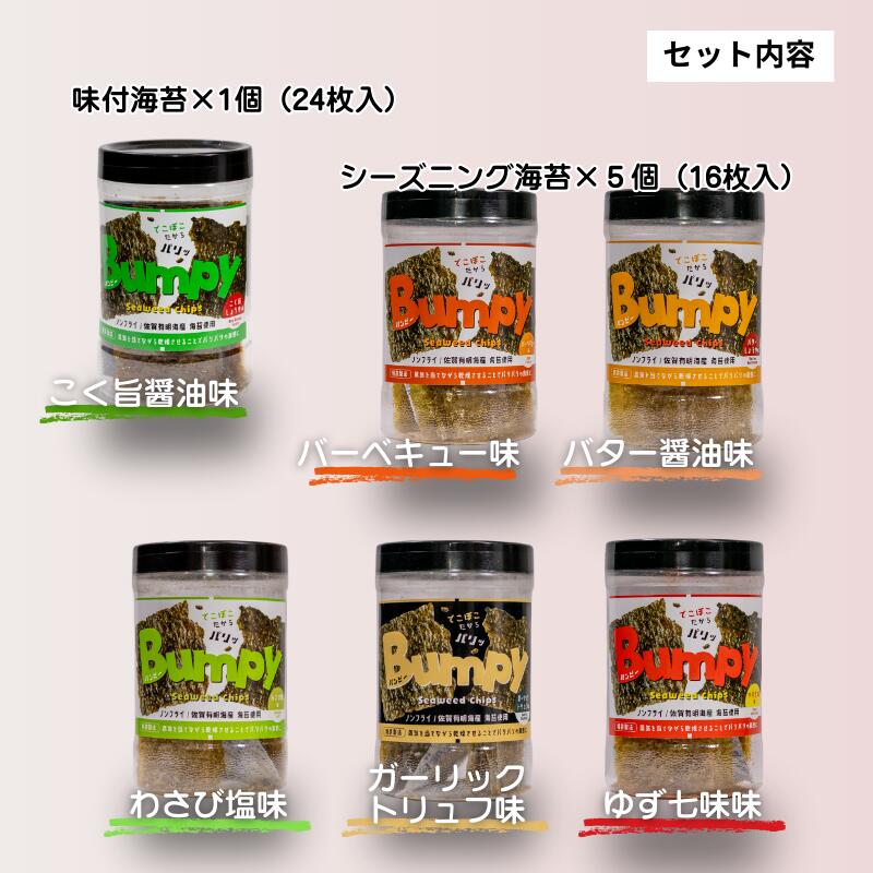 - 【ふるさと納税】佐賀海苔使用 お子様にも人気のシーズニング海苔5種+味付海苔1個 合計6個セット ボトル入り フードロス削減 SDGs スチームドライ製法 有明海苔 有明海産 佐賀海苔 海苔 味付け海苔 スナック おやつ おつまみ 有明海産 乾物 佐賀県 佐賀市:B125-015