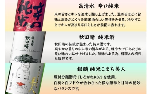 高清水・秋田晴・銀鱗 三蔵純米呑みくらべ 720ml×各1本 秋田県酒類卸