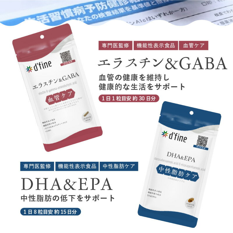 - 【ふるさと納税】d’fine 機能性表示食品エラスチン&GABA・機能性表示食品DHA&EPA・ミネラル&ビタミン 〈生活習慣病予防におすすめののセット!〉【 栄養バランス 健康 生活習慣 腸内環境 サプリメント 美容 アンチエイジング 体のコンディション 代謝 回復 送料無料 】