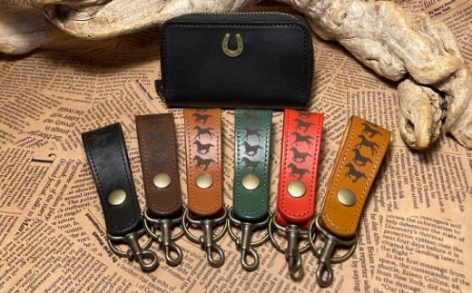- 蹄鉄ラウンドファスナーコインケース(ブラック)&馬九いくキーリング(レッド) 栗東市 / 株式会社ブルズエフ [BIAU129]