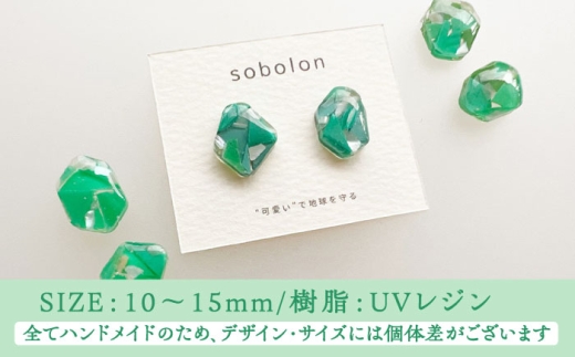 【ピアス銀ネックレス銀】 海洋プラスチックから生まれた ピアス & ネックレス sobolon いびつちゃん 緑MIX [TFC034]