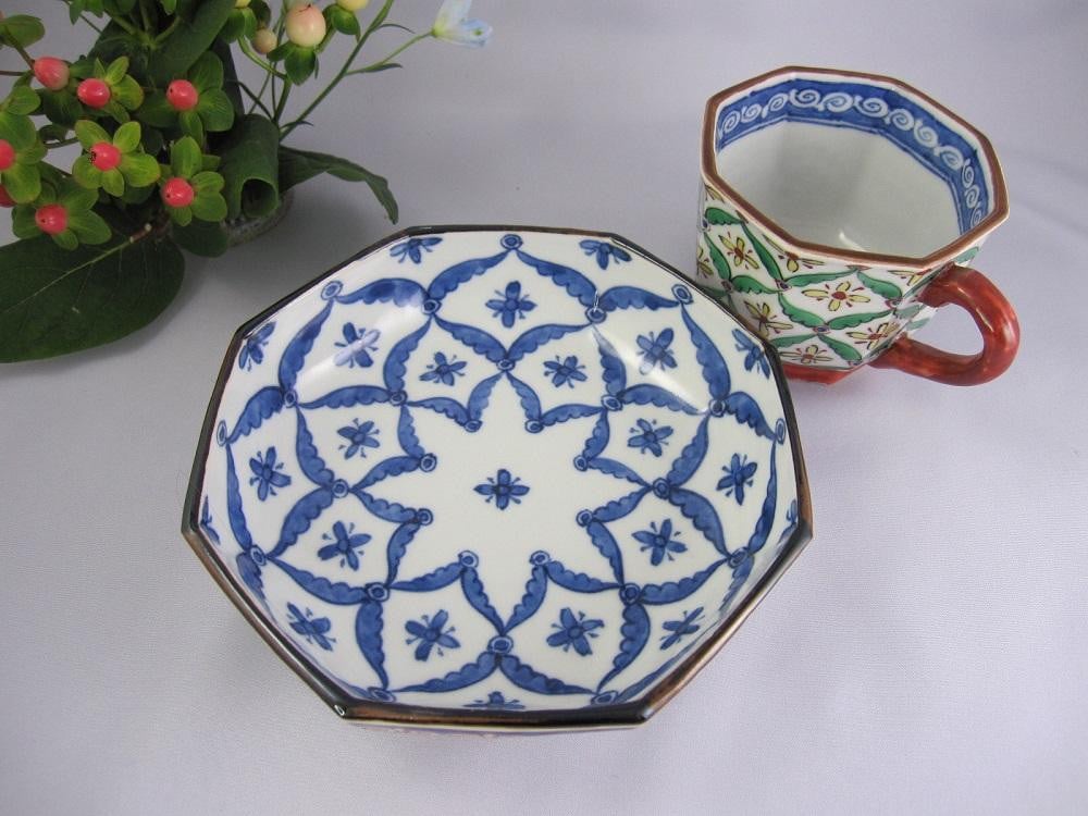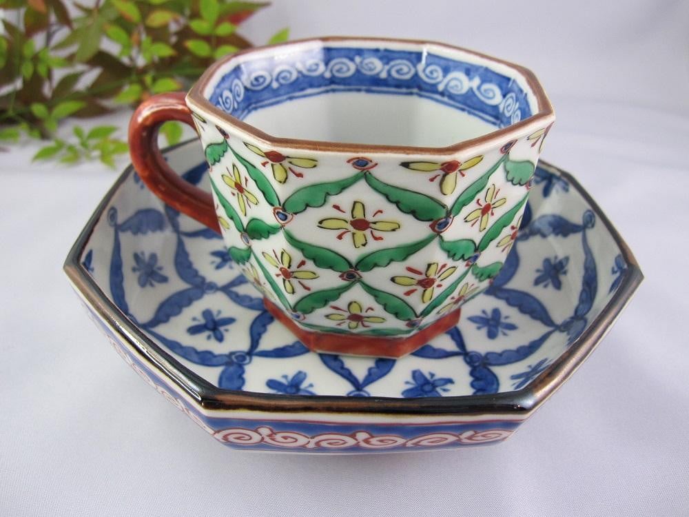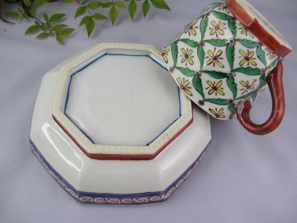【京陶きよみず】清水焼 染付色絵七宝紋珈琲碗皿 カップ&ソーサーセット