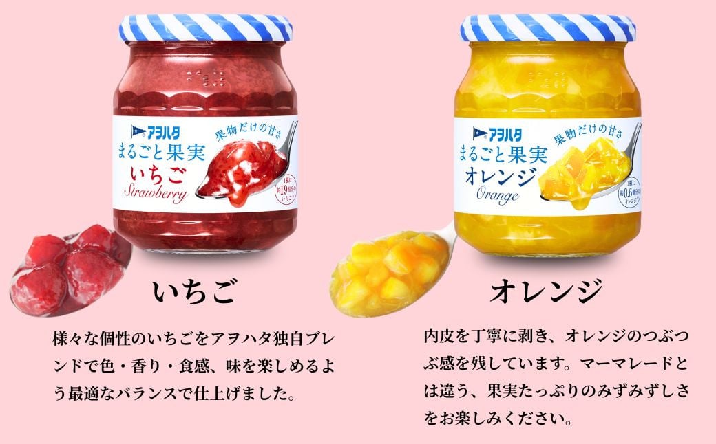 【アヲハタジャム】まるごと果実 いちご / オレンジ 5+4瓶 合計9瓶(1瓶250g〜255g) ジャム ママレード マーマレード 果物 フルーツ スプレッド イチゴ 苺 いちごジャム オレンジ みかん ミカン