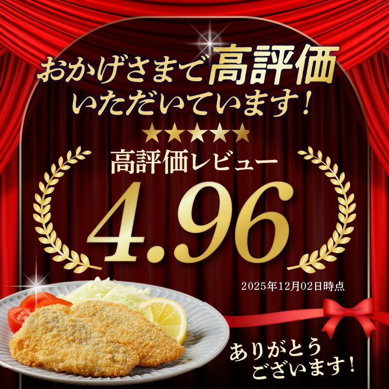 新鮮な真あじを使ったアジフライセットがもらえます。松浦市は「アジフライの聖地」として知られ、地元で水揚げされた真あじを使用。鮮度を保つため、ワンフローズン加工で冷凍され、調理時に解凍の手間がありません。サクサクの衣とふっくらした身が特徴で、青魚特有の臭みがなく、絶妙な味わいです。タルタルソースやウスターソースを添えて楽しむのがおすすめ。おかずやお弁当、おつまみにもぴったりです。