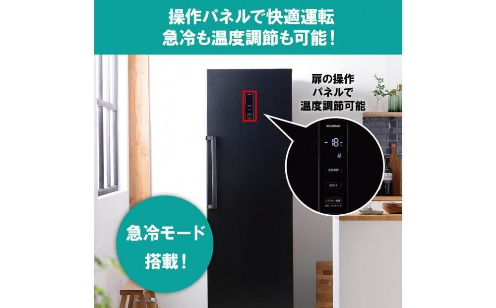 - 冷凍庫 274L IUSN-27A-B ブラック 冷凍庫 274L 冷凍 フリーザー ストッカー 氷 食材 食糧 前開き 右開き ハンドル付き 保存 省エネ エコ 節電 ファン式 キッチン 家電 アイリスオーヤマ