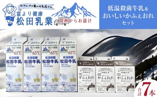 長野県 北アルプス麓の牛乳屋さん 低温殺菌牛乳(1000ml×4本)&おいしいかふぇおれ(500ml×3本)セット