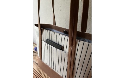 - 【AKIRAオリジナル】【マツコの知らない世界 で紹介されました!】大きなトートバッグ レディスショルダータイプ ストライプ×薄茶デニム A4対応 大きい 大容量 軽量 軽い 横型 日本製 キャンバス 肩掛け 通勤 通学 上質 カジュアル オシャレ シンプル レディース カバン 鞄 バック