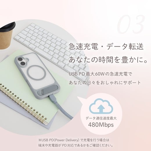 Owltech スマートフォン用ショルダーストラップ&USB Type-C to USB Type-C 充電ケーブル Mignonne(ミニョン) OWL-CBX2MIN07CC-AR【 ガジェット 海老名市 】