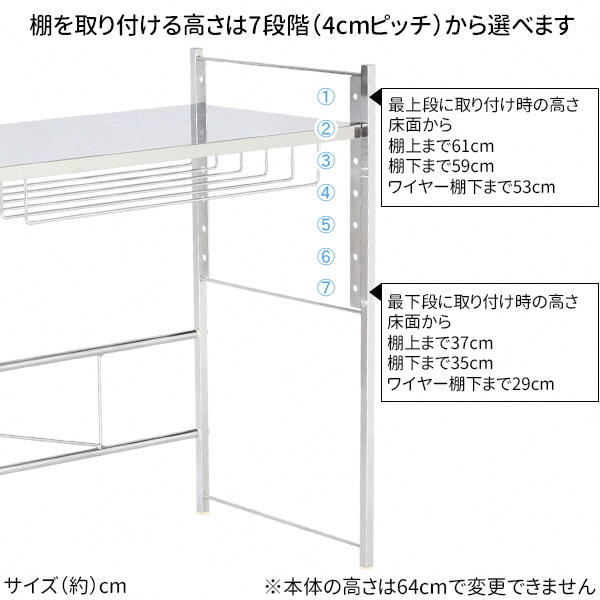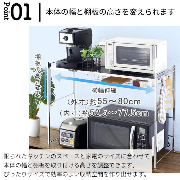 - YX-707 ステンレス棚幅伸縮家電ラック 1段スリム FC043010