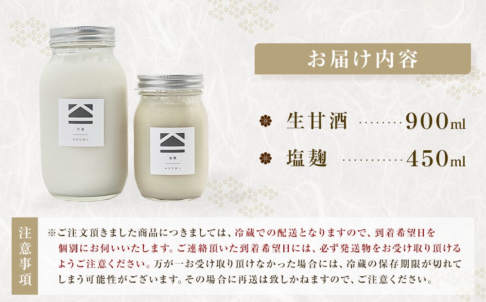 - 【保存料不使用】生甘酒 ・塩麹セット(900ml&450ml)