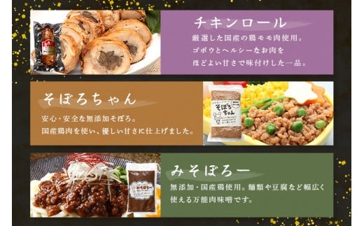 美味しい鶏々セット そぼろちゃん・みそぼろー・チキンロール・紅茶鶏 鶏肉 鶏そぼろ 肉味噌 肉巻き ごぼう巻き かやくごはん 肉 加工品 (525)