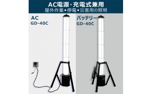 - LED円柱ライト 40W 充電/給電 2WAY電源 4000LM ハイブリッド 充電しながら点灯できる GD-40C