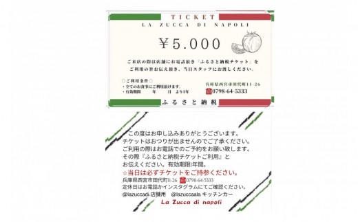 - 西宮市 本格イタリアン 「LA ZUCCA DI NAPOLI」 食事券5,000円分